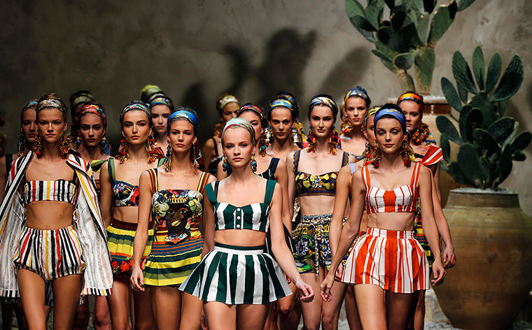 Among all of the brands, Dolce & Gabbana totally grab my first attention. Their 2013 SS collection was inspired by Sicily tradition where their brands originated from. It’s full of holiday atmosphere, picturing wearing one of them heading to the beach. There are four elements creating rich colourfull and enthusiastic collection: