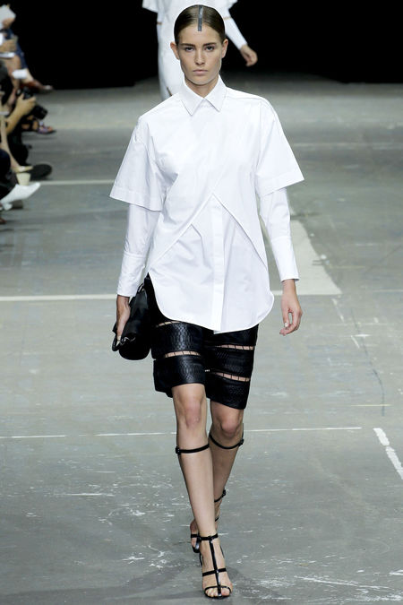 Apart from sharing this news, that us review his Spring/ Summer 2013 runway show on September. We can see the collection is constructive with sophisticated shape cutting, putting all piece of shape fabric together seamlessly. Come along with zabra like high heels or white cross heels and creating futuristic look but is highly wearable outfit. It gives a tough, sporty and edgy look. The best part is the end of the show, models spread out and light off ; all their outfit glow in the dark, that is so cool~!!