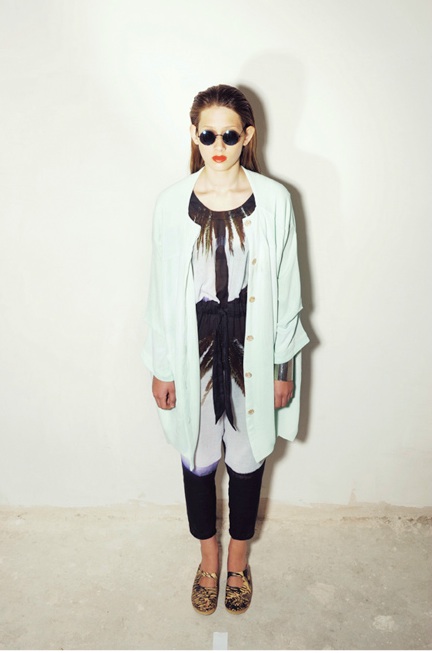 Their SS13 collection – Gravity pattern shows different transformation of elements such as circle, curve and bow, in contrast to the straight line. The colour choice is relaxing and gentle, combine seamlessly with the “doodle” sketches. Additionally, they collaborate with a Swedish shoe manufacturer, come up with a basic wooden sandal.