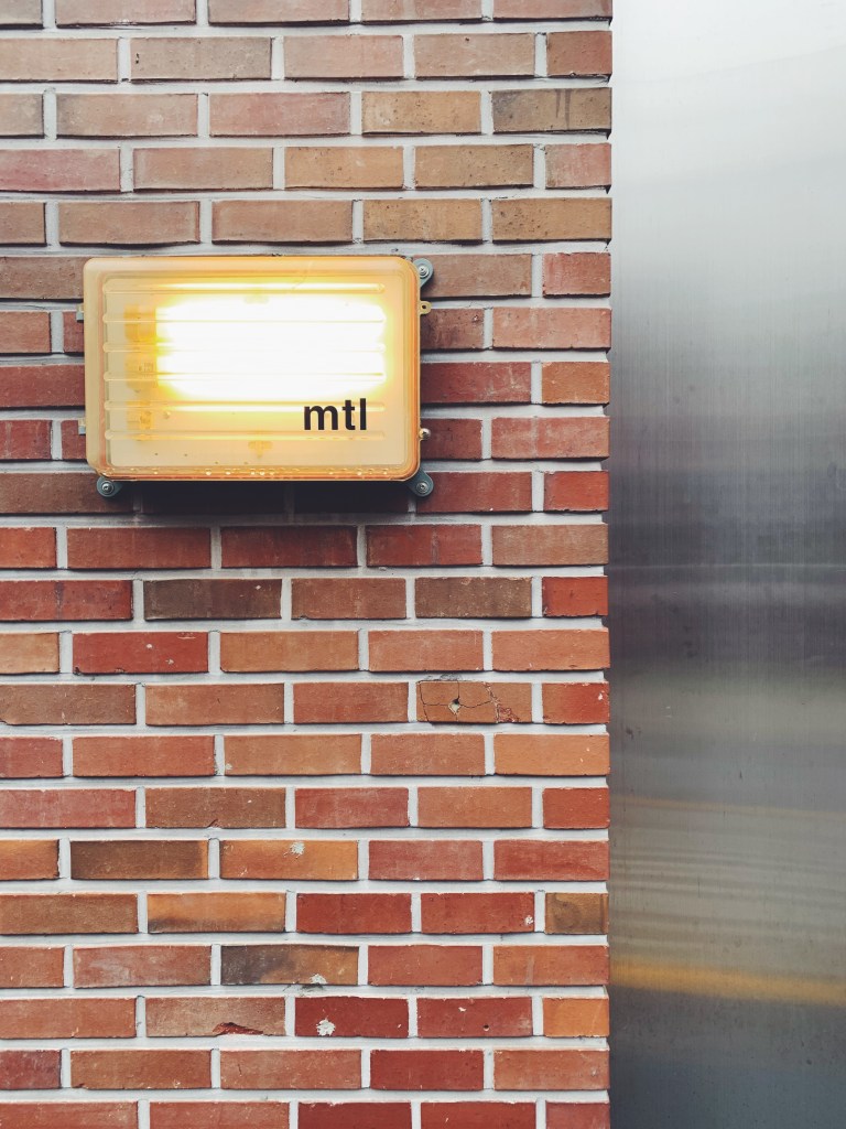 一大早又是平日的時間,一路上很安靜悠閒的走到咖啡廳門口,紅色的磚瓦上簡約的方型燈箱有個mtl的logo. 推門也很特別,中軸在中間像是旋轉門一樣.