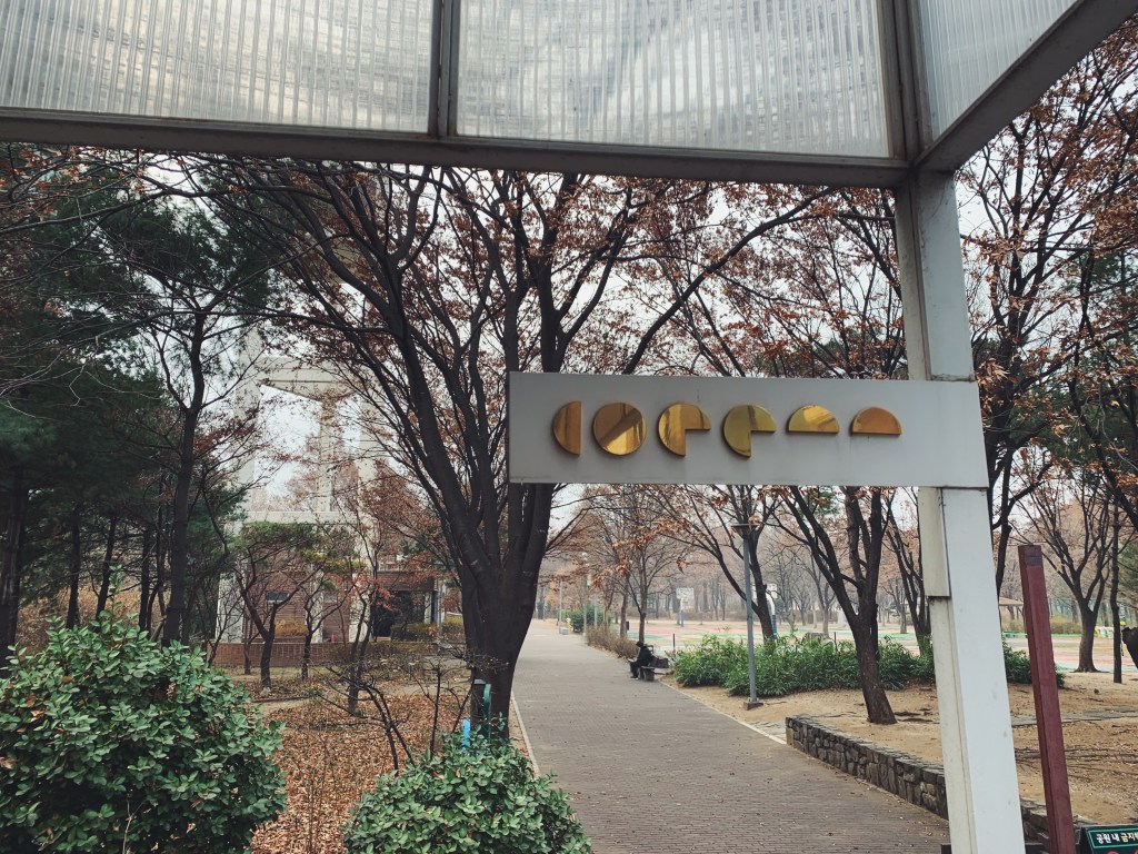 我很喜歡他的logo像是陰晴圓缺的月亮般. 其建築外觀像是韓式的建築,旁邊霧面的帷幕圍著樓梯. 面對著就是綠意盎然的首爾林,在樹林旁不譁眾取寵.