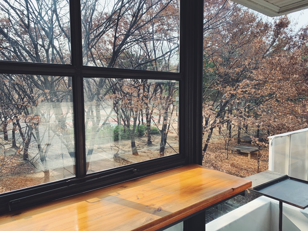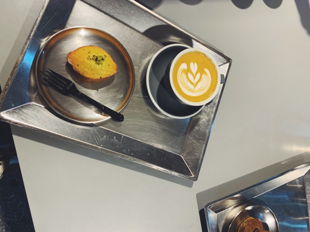 室內是白色系的工業風,點杯熱拿鐵往外看陽光洋洋灑灑的隨著樹影晃動. 在這裡喝咖啡也可以去逛就在附近的首爾林貨櫃屋,或者若正逢秋季可以在首爾林散步欣賞轉黃的銀杏.