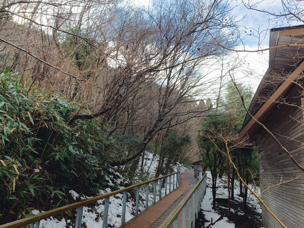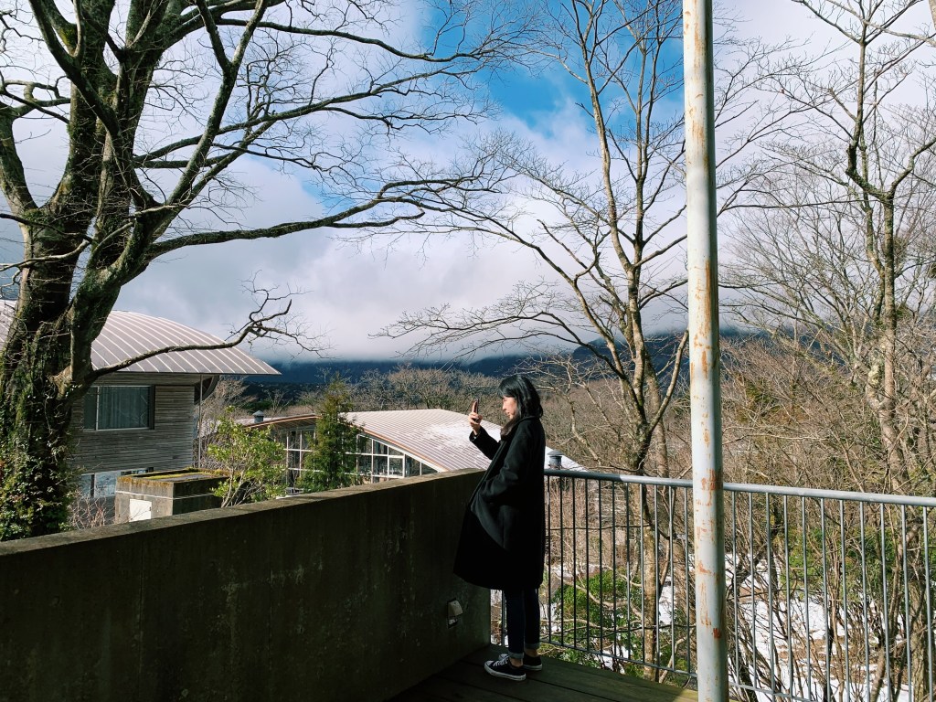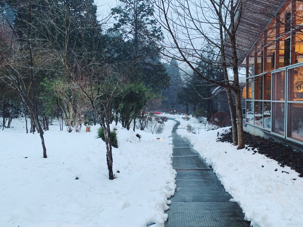 當天的天氣陰雨綿綿,我們從伊豆開車到箱根,沿著蘆之湖到箱根神社,踏著石階的正參道往上走,兩旁有高聳的老杉,即便下著雨,走在蔥鬱的林蔭下也是很浪漫,不禁讓我想像龍貓是否會出現在我身旁. 走到最上面可看到朱紅色的箱根神社正殿,在此可以祈求開運,結緣或順產等. 返回往下走跨越道路,就可以看到知名的平和的鳥居.佇立在蘆之湖上,面對整遍湖景是許多人來到這必拍的景點. 只可惜我們無法走到鳥居下,因為階梯路面結冰很濕滑,不過我們從上方的道路往下看也是很美的. 漸漸的雨又開始下大,剛好我們也即將出發前往讓人充滿期待的Hakone Retreat Fore,可以早點出發去享受裡面的設施.