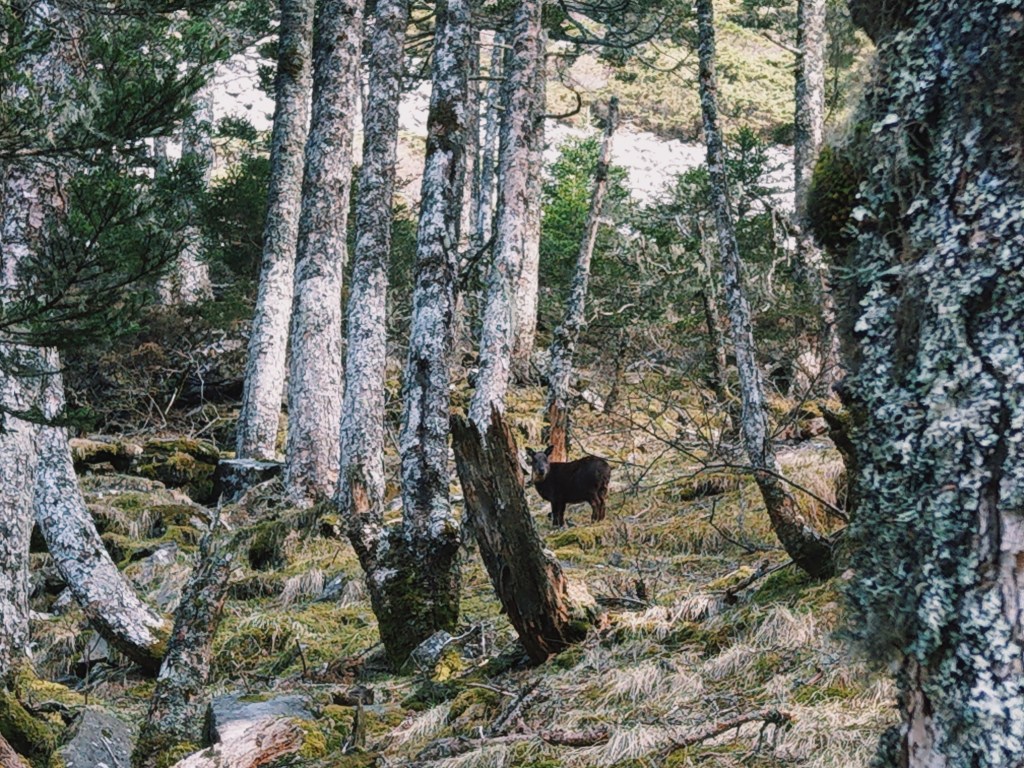 沿路回三六九的山莊於黑森林的路上,終於瞧見了長鬃山羊的蹤影,遠遠的站在樹林中,實在是太可愛了! 用無辜的眼神盯著我們這些好奇的人帶點警戒感. 雖然沒有離山羊很近,但是能看到就心滿意足了,算是不枉費此次我最大的願望.