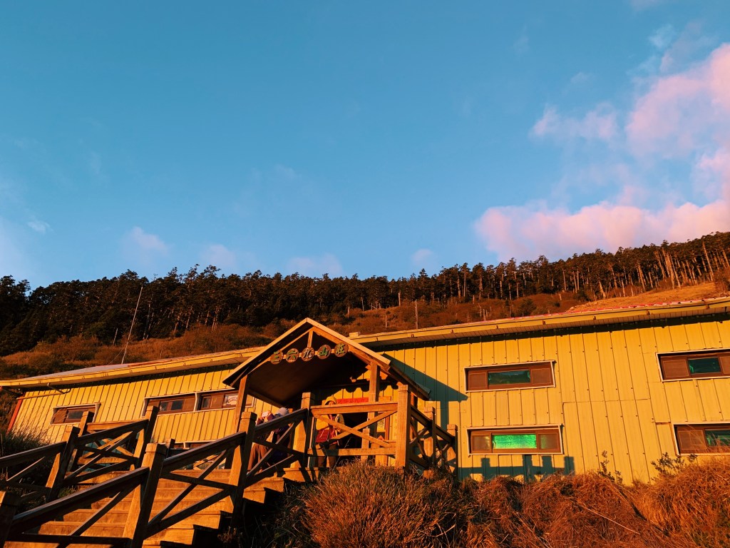 回到三六九山莊前濃濃的霧氣覆蓋著那段往黑森林的草坡. 溫度開始下降變的蠻冷的,我們在平台上的木桌吃了晚餐. 天色也逐漸變暗,在接近黃昏之際天空有著橘色漸層的微光. 半夜起來上廁所時,仰望天空繁星點點.