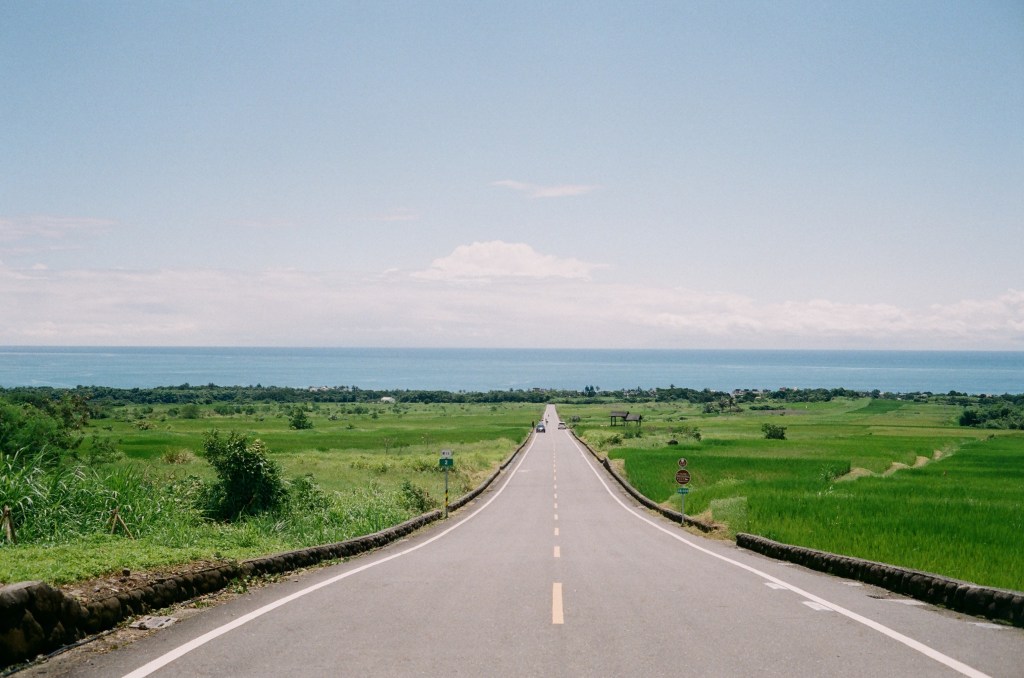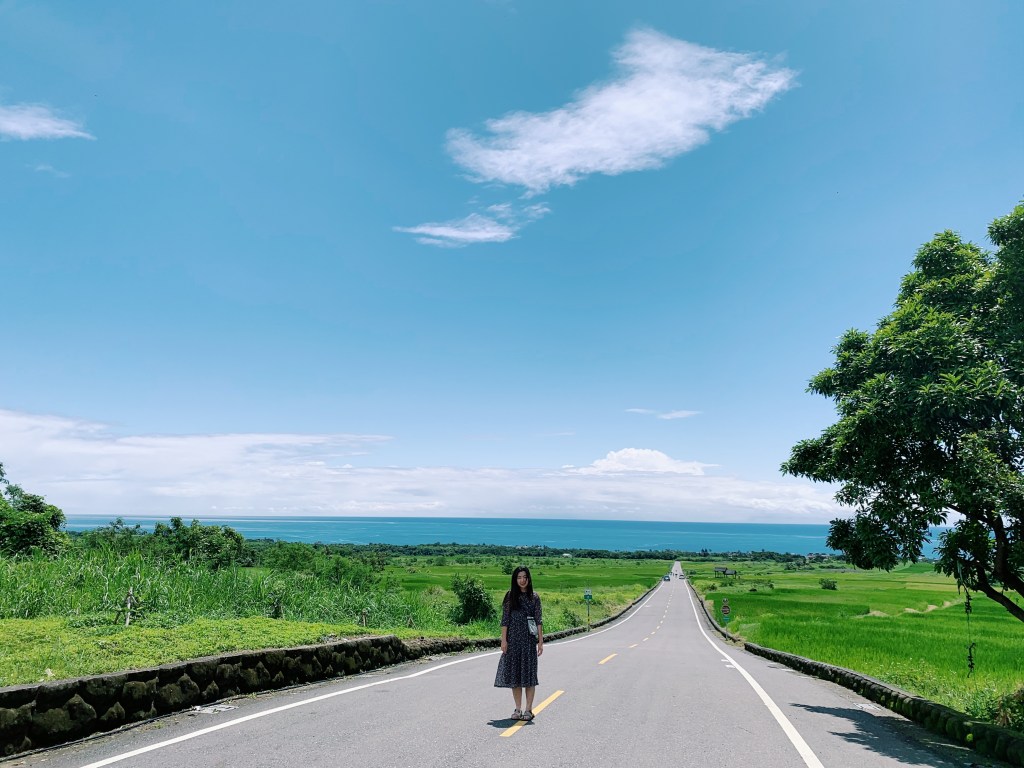 依依不捨的離開這個美好的住宿,我們開著車到附近的金剛大道. 這裡被稱為東海岸的伯朗大道,不過這裡除了田野還有山和海. 今天的天氣就是我所期待的,陽光照射在金黃色的梯田上,田野的稻穗隨著風飄動著. 長長的公路通向太平洋,海天一線的藍呈現不同顏色的層次,回頭可以看到後面的金剛山,被厚實的雲覆蓋著. 依山傍海的絕佳美景就是我對長濱如此喜愛的地方.