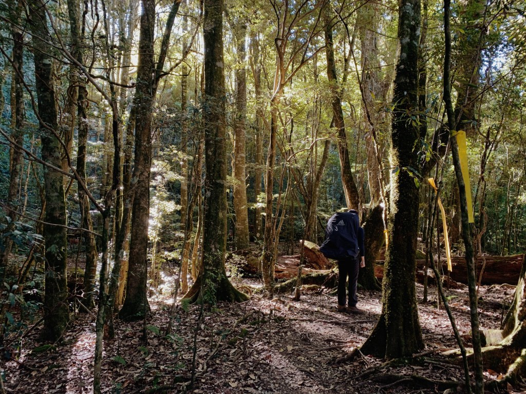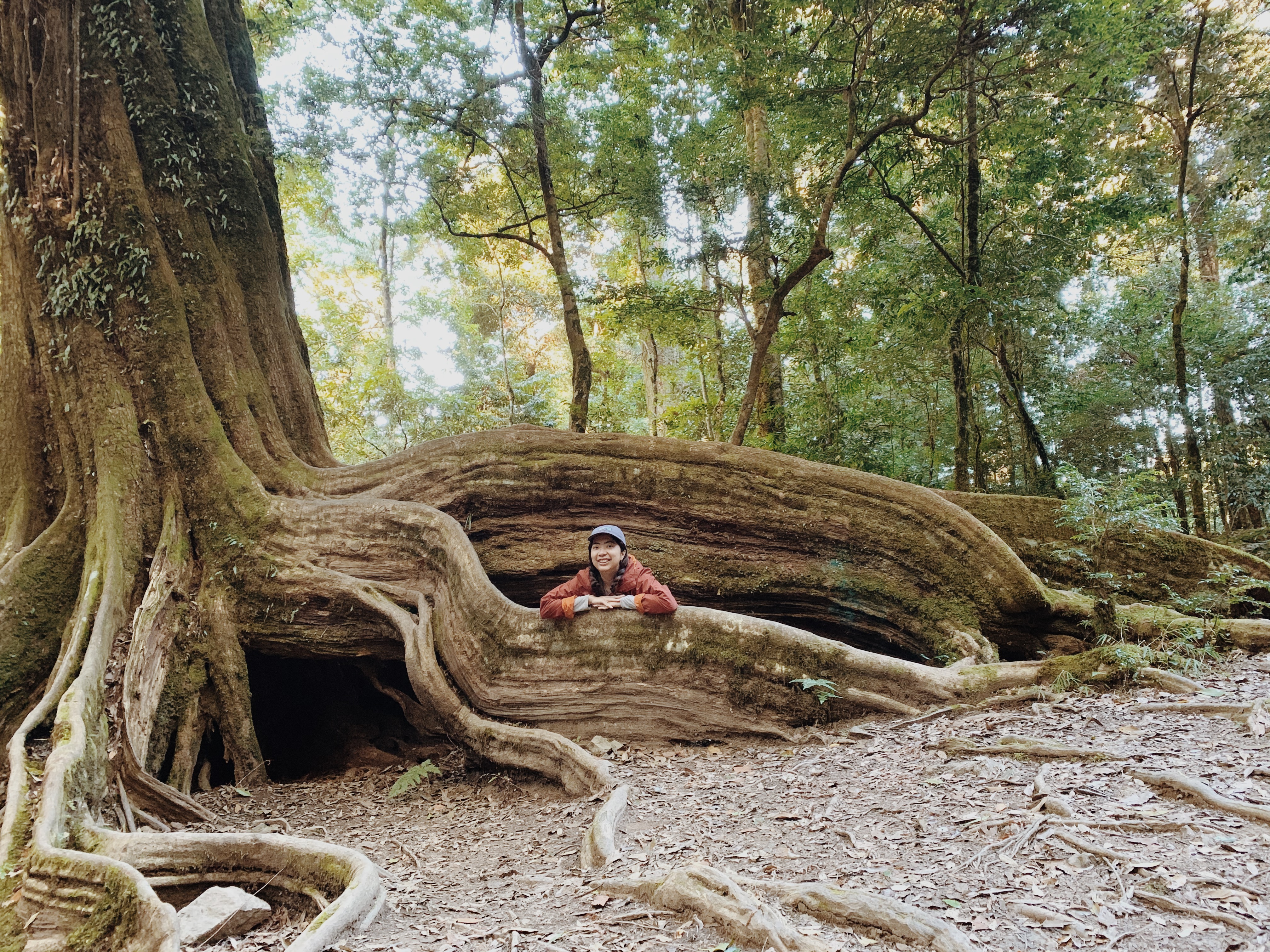 我坐在大板根前方吃著早餐,這次帶了自己做的蔥麵包和我設計的山形手工餅乾. 大板根是棵長尾栲,為何能發展出這麼特殊的巨大板根,據推測是因為生長在土壤淺薄的地方,為了支撐樹身抓緊土地,而發展出如此特別的樹形. 這麼珍貴的樹希望他可以持續屹立不搖的生長在這,所以來到這裡的大家不要攀爬板根,或者將垃圾丟棄在這裡. 因為我們要離開時發現有電池就丟在大板根的周圍,這樣如此破壞環境,大板根的存活將會岌岌可危.