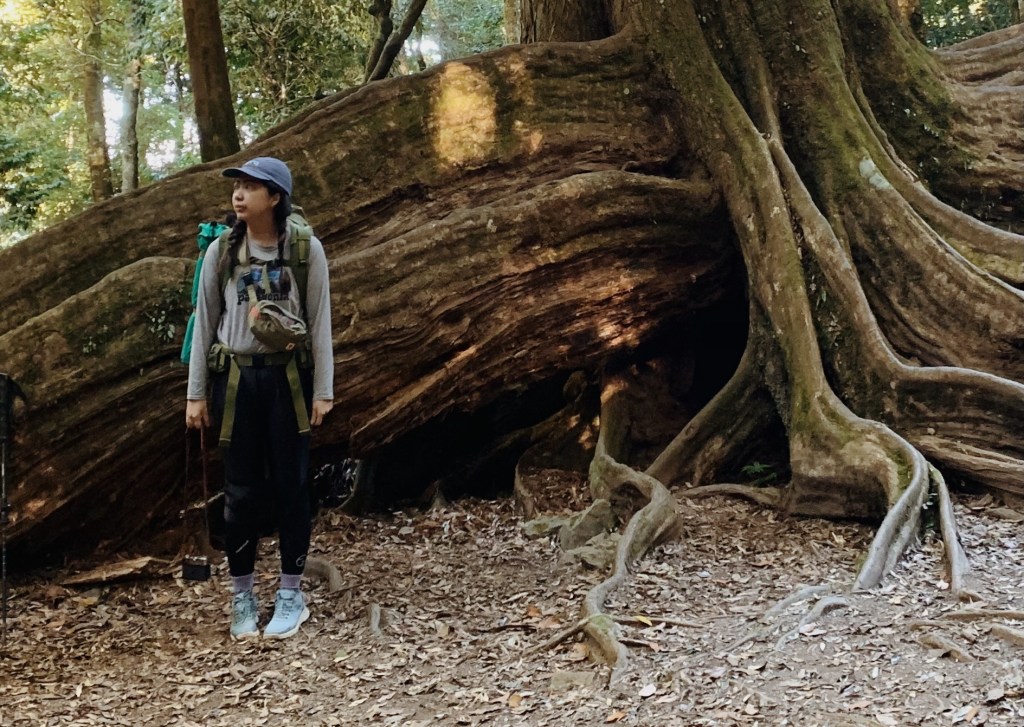 隔日一早我迫不急待地要好好欣賞大板根的姿態,我快速的穿起鞋子,發現經過一個晚上鞋子內部也沒有反潮依舊乾爽,而且穿脫非常便利. 大板根真的是很神奇的樹木,粗壯的根從兩側像是張開手臂一樣展開,我用各個角度或進或遠的觀察這棵樹木. 彷彿我就像是置身於神話故事中的場景,自己想像著說不定有一隻龍貓就住在這棵樹的底下. 我站在旁邊是如此的渺小,站在排狀的根部之間,就像在大板根的懷抱裡,我雀躍的拍攝各個角度,但還是親眼所見才能體會那種震懾感.