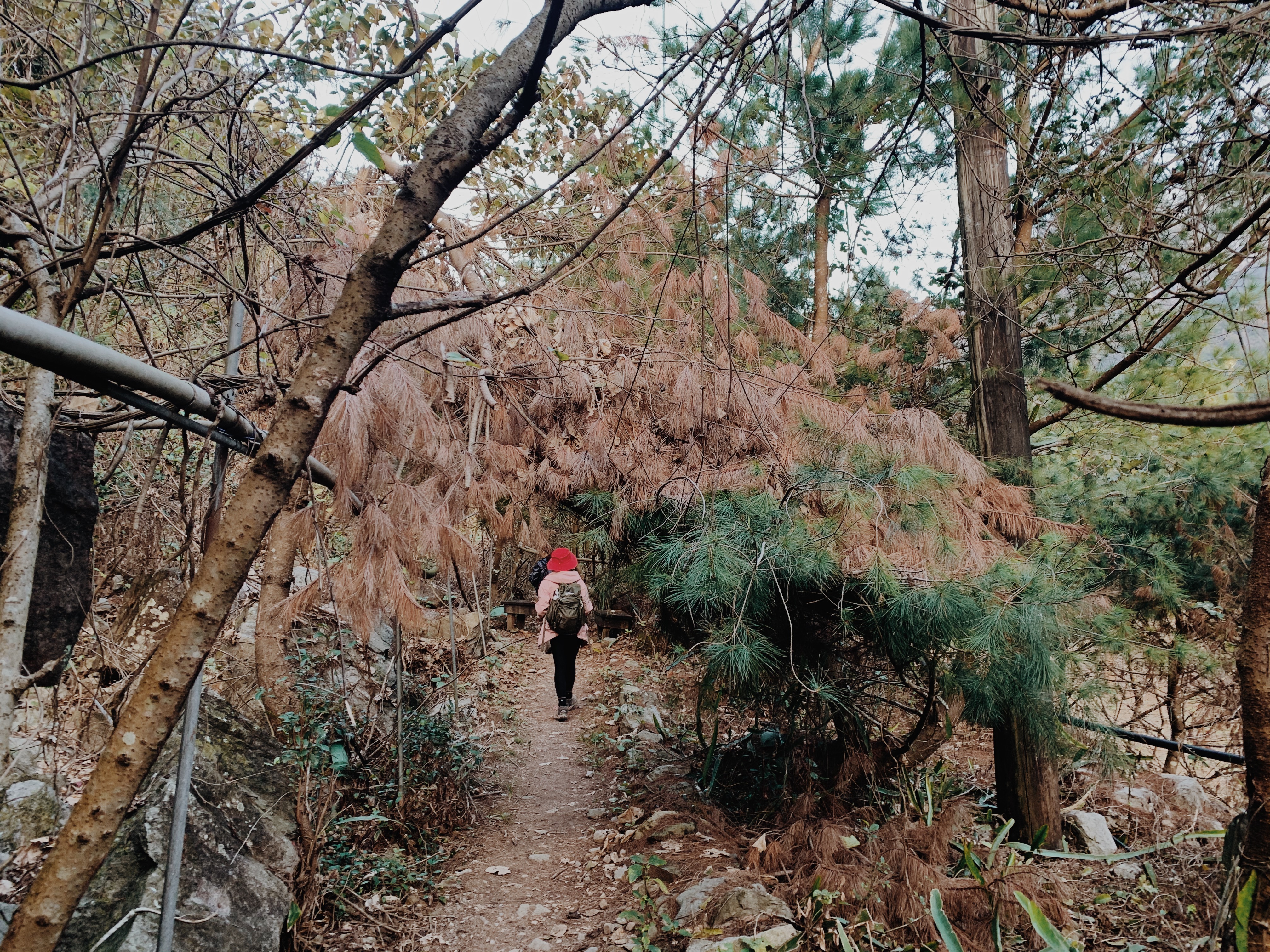 我們幾乎在這個平台賴了一個下午的時間,返程時我們取右邊的路徑. 是之字形往下,雖然路程較長但沒有上來的時候的路還要陡. 這時候天還是明亮的,但可以看到月亮已經出現在天空中. 這附近好像有蠻多露營場地,這個季節是蠻適合在這裡露營. 由於朋友要撿枯掉的五葉松針來編織,最後時我們看到一大叢超美的,朋友撿回去之後用五葉松針做成杯墊非常厲害,我還跟她拜師學藝一番. 深深覺得這種以野外烹煮為主軸的行程真的很棒,不匆忙的行程且可以與朋友好好的享受戶外的時光.