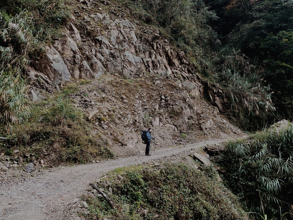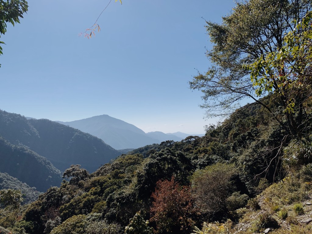 早上從大家在高雄高鐵站集合出發,跟上次前往復興溫泉一樣,會需要前往寶來. 而這次從高雄出發路線不同,行經美濃,茂林和六龜,沿途看到十八羅漢山,第一次看到覺得很驚艷, 外型特殊如火炎山一般奇特.抵達寶來後轉入小關山林道. 大約在7k處到達寶來檢查所,這裡需要下車做入山的登記. 車子可以開到約25K, 接下來的路程是一路顛頗,真的是不太好開,建議要來此的話要開底盤較高的車子. 蜿蜒的山路偶爾從開闊處可以看到壯闊的山景,今天肯定是個好天氣. 這個山路無法開太快,要閃避路面的坑洞路寬也不大,開了將近兩個小時好不容易抵達24K處,我們找到一個地方將車停在路邊,後段徒步到登山口.