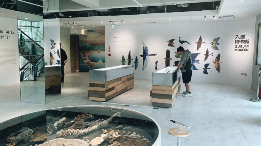 入關博物館是將谷關遊客中心所重新打造而成,而這個計畫是許哲瑜和郭中元合作的台灣溫泉品牌「PLUS 19 台灣溫泉鄉」,將重新打造谷關和金山遊客中心. 這個空間將會由各種戶外旅遊,攝影師,插畫家等去詮釋在地的特色. 谷關遊客中心外觀由「共感地景」做包覆式的改造,光打在銅瓦,鋁瓦和錏瓦上,創造了嵐霧林間的意象. 入口處的識別設計代表了谷關所擁有的「山・嵐・霧」之美景,豐富的生態植物景觀. 走進室內左方有幾個望眼鏡讓你一窺周圍山林的樣貌, 往樓下的樓梯的玻璃上是陳怡庭的充滿童心的泡湯插畫,她也繪製了谷關所常見的鳥類.