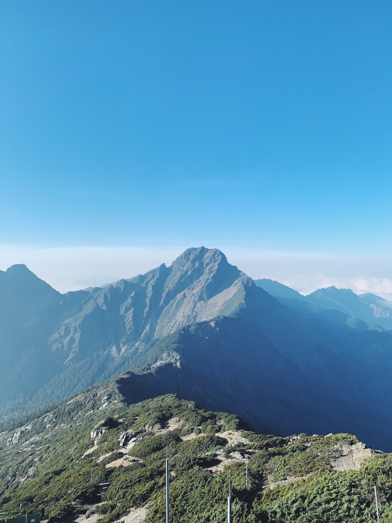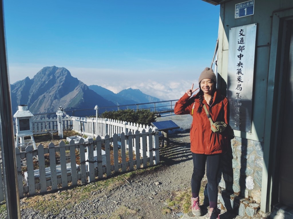 在這個完美的天氣來到北峰和氣象站真的是太幸福了! 抵達時我們先到氣象站旁走上去的玉山北峰三角點拍照,後面那一片藍和白雲美到很不真實. 玉山氣象站位於海拔3858的玉山北峰山頂上,是東北亞最高的氣象站. 最早是日治時期於昭和18年(1943年)的十月一日所成立,當時稱為「新高山氣象台」. 當初的設計是為了太平洋戰爭所需的高空天候的情報. 在民國78年(1989年)改制為「玉山氣象站」,是現在台灣最重要的觀測站之一.