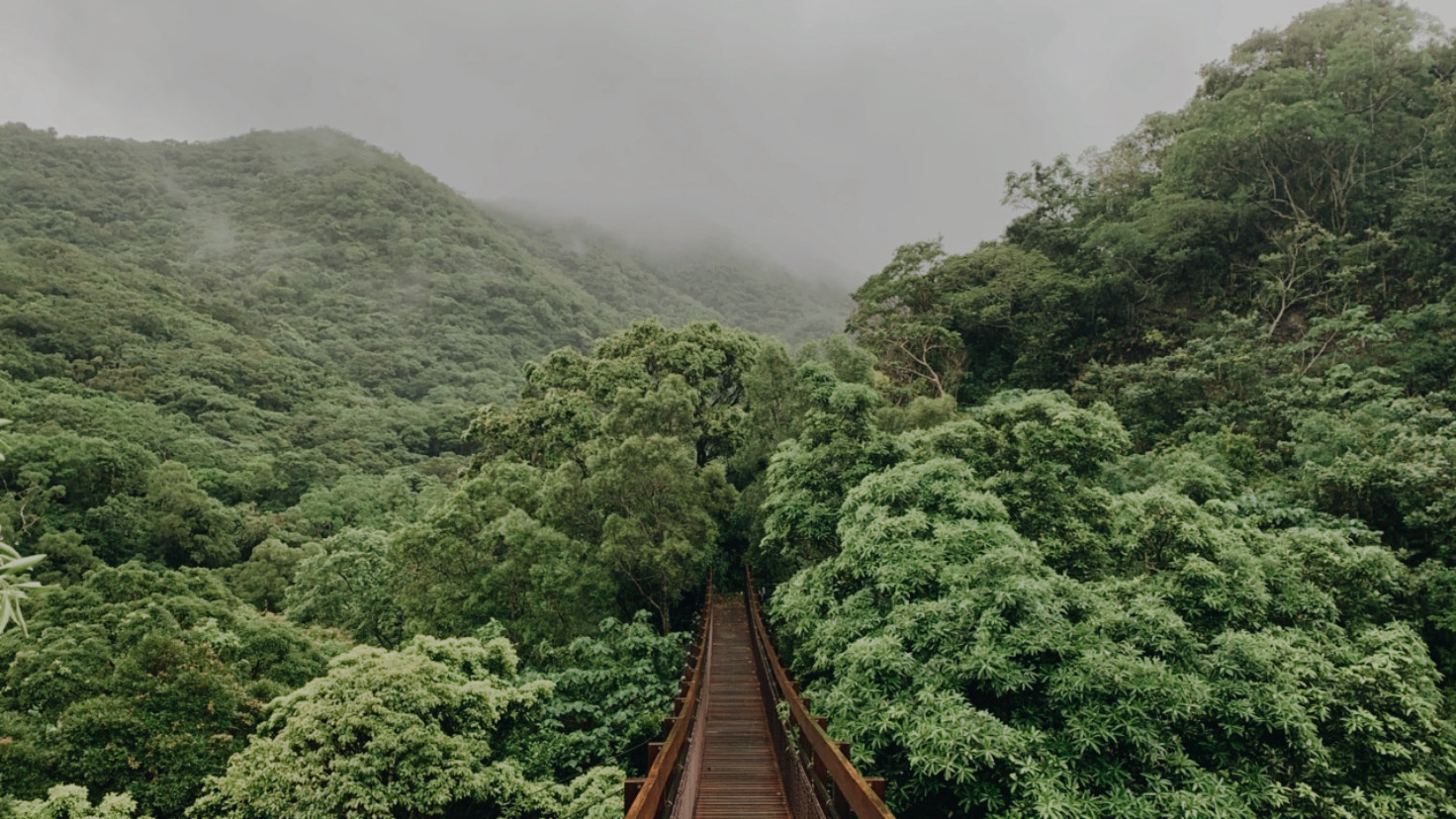 從高雄出發後,我們第一站要前往的為雙流國家森林遊樂區,位於屏東縣獅子鄉,位於前往台東的沿途上。抵達時開始下小雨,不過在七月炎熱時刻下一點雨,反而走起來相當的舒適。裡面有幾個步道,有坡度較陡的帽子山步道,可以眺望太平洋及台灣海峽。有兩條路線可以走去看雙流瀑布- 沿山步道和瀑布步道,另外還有白榕步道。這次我們走沿山步道接瀑布步道前往雙流瀑布,坡度和緩好走,中途會經過一座木製吊橋,通往翠綠的山,上方還飄著霧氣。已經許久沒有沈浸在山林的那種放鬆感,呼吸著清新的空氣。