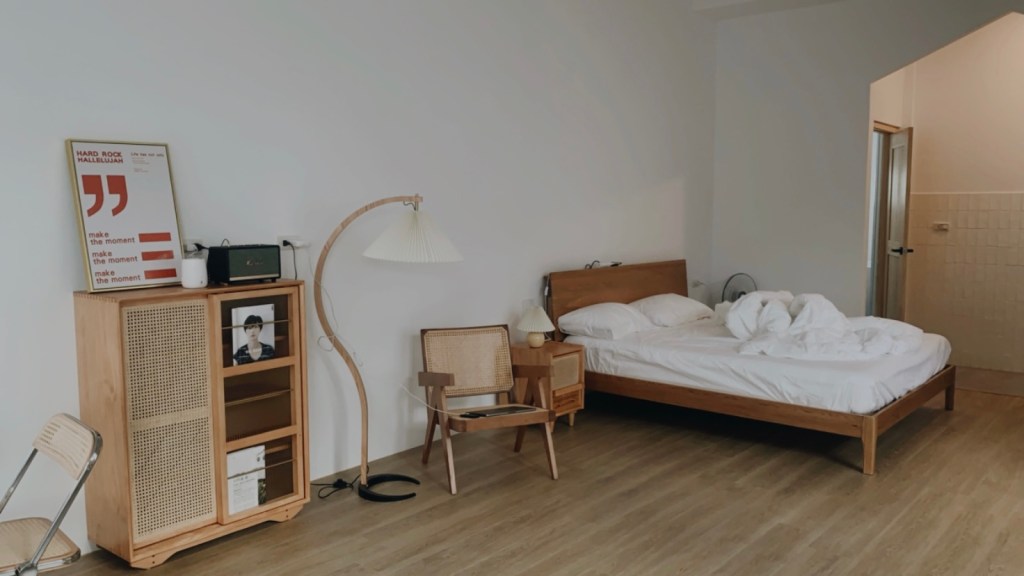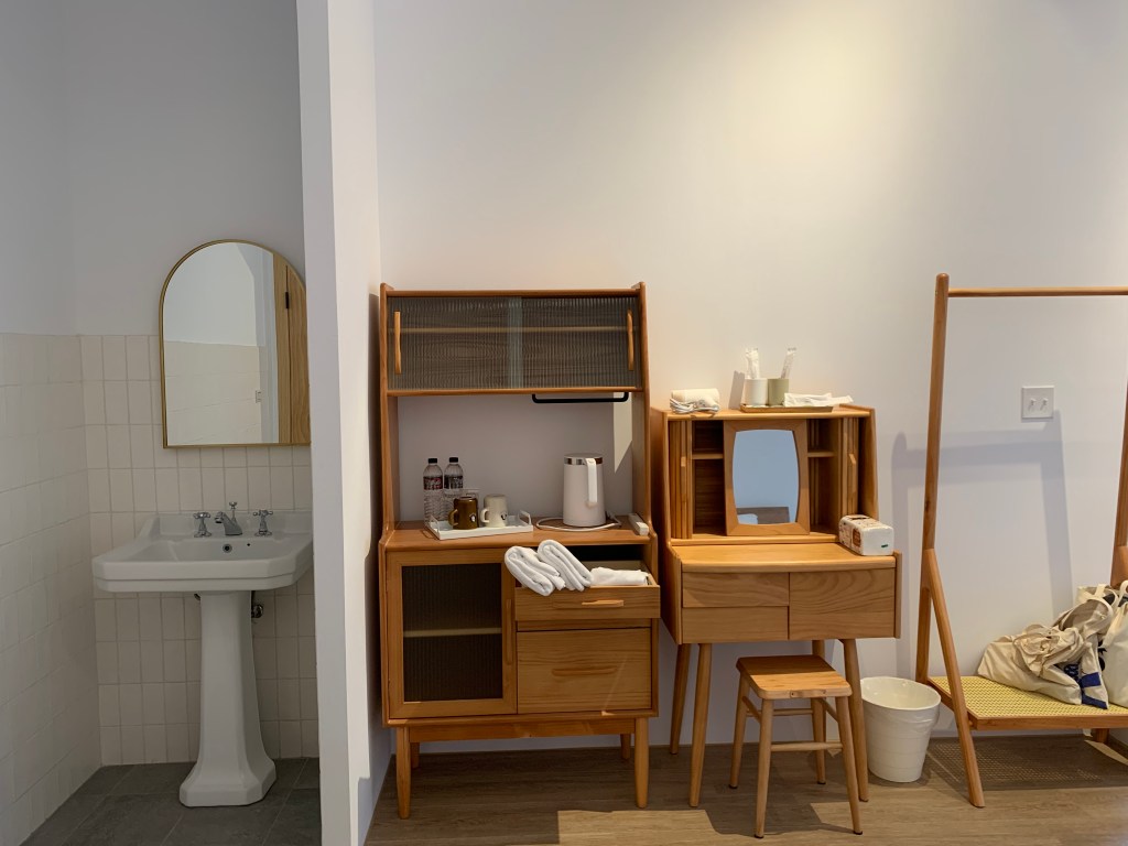 不管看幾次台東的海都不會膩,雀躍的看著灰藍色的漸層海洋,我們到海濱公園吃著黃記蔥油餅看著海,以前都覺得這些沒什麼的小事,在疫情的封鎖之下才覺得平常這些小事是多麽幸福。帶著興奮的心情前往薄荷巴黎去Check-in,轉進小巷這個純白色與木質落地窗門面馬上吸引目光,已經看到朋友在門口迎接。上次來的時候應該是去年的時候了,在重新裝修之前也是小巧可愛,他們本來就在細節很注重,upgrade之後簡直是美到發泡了!除了咖啡廳之外現在也多了民宿了,他們提供兩個房間,一個是有天景的谷雨 VIP 特大雙人房以及立春雙人房,而這次我們入住的是超級大的谷雨 VIP 特大雙人房。