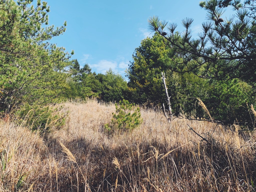 攀爬上木頭階梯後會到一個平坦路段,為合歡山越嶺古道的一部分,此路線為日治期間日本人為了理番所闢,從南投霧社到花蓮太魯閣。由於中橫公路的開通後,古道而隨之荒廢後,西段只剩下大禹嶺至關原這一段了。這一段走起來真的很舒服,踩在柔軟的二葉松的針葉上,涼爽的樹林有著高聳的巨木,擁抱著樹幹聽著鳥兒的低語。迎來一個開闊的展望處,毫無遮蔽的可以一覽對面的群山,溫暖的陽光灑落在一片草芒草上。若沒有要走這個辛苦的,可以來走這一段到卯木山就可以,有展望且走起來平易近人。