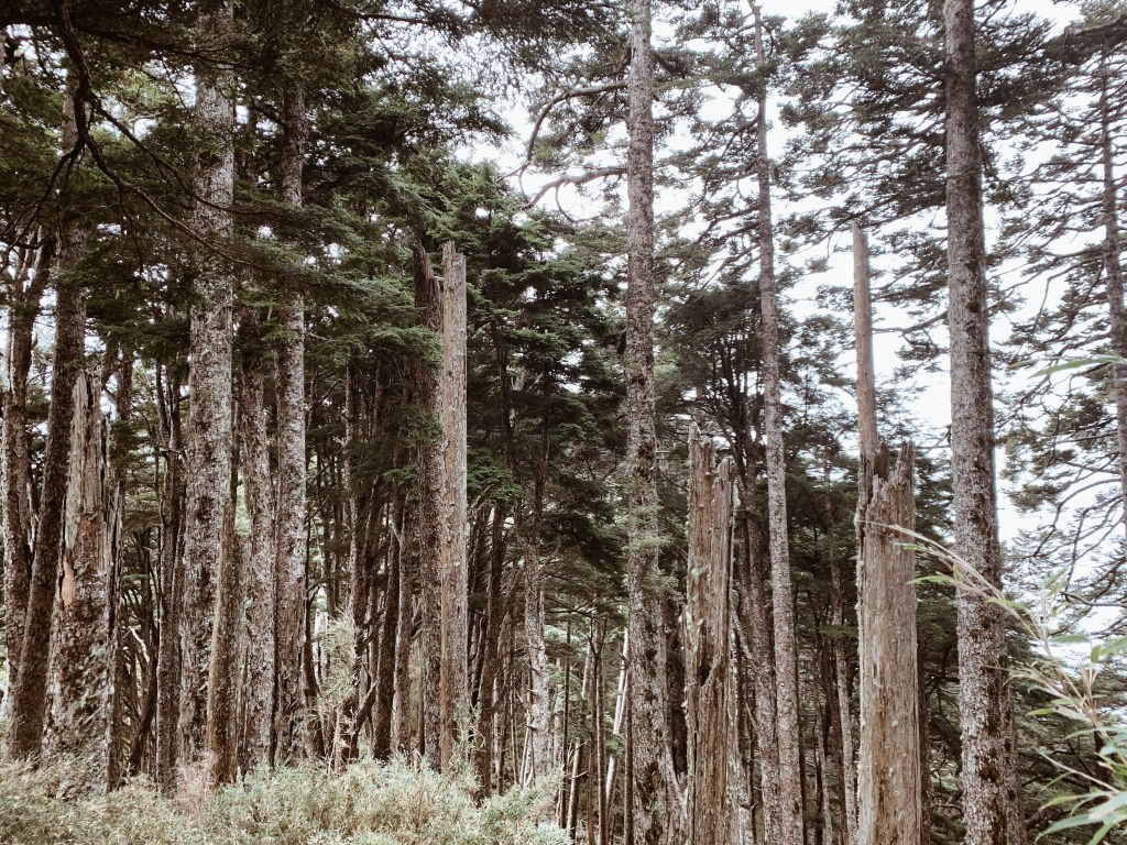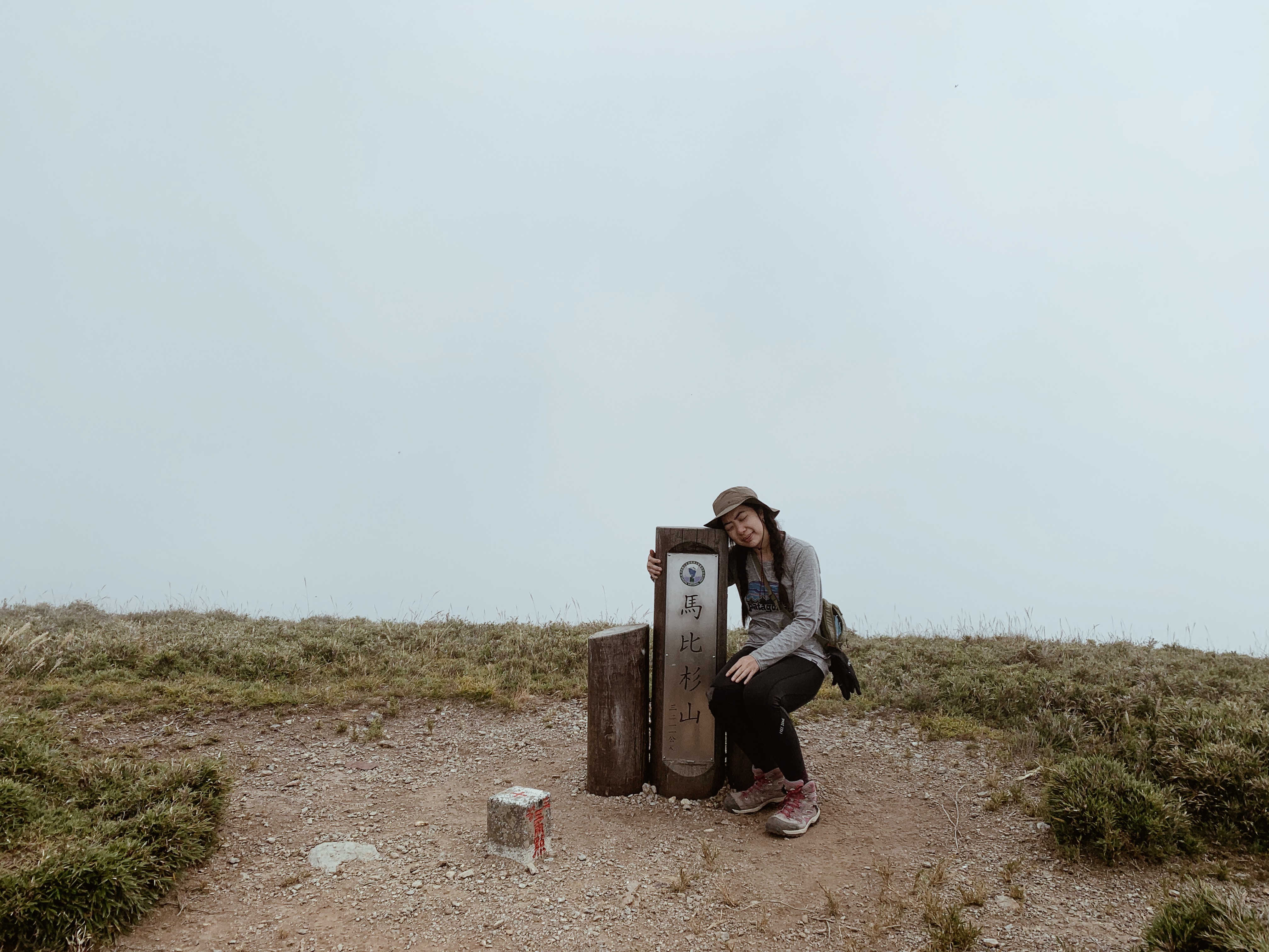 終於來到岔路口,從這裡還有1.7K的距離,怎麼還是這麼遙遠呢,只能繼續努力進入樹林中走。終於氣喘吁吁的登上馬比杉山,可惜後邊是一片白牆,我只是走過來這裡就這麼累了,等下還有遙遠的回程必須面對。沒有在山頂停留太久,我們回到樹林內平坦處吃午餐,飽足後才能好好面對等下的路途。我們這次走的是環狀路線,回程會是走和平南溪(大濁水南溪)的谷地回到山屋。