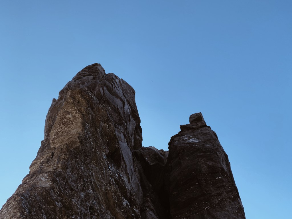 走在南湖東峰側腰上的碎石坡上,我們也逐步靠近山頂,如同女王頭的圓柏彎曲的方向,告訴我們如何走到東峰的山頭,屹立不搖的矗立著指引著登山客。站在南湖東峰山頂被周圍令人驚嘆的山景環繞著,太陽將整片山頭照的清晰可見,正對面的聖稜線從雪山山脈到大小霸的輪廓就在眼前綿延。南湖東峰的登頂碑呈現如Micheal Jackson的45度傾斜舞步的站在山壁上,我們就在搖滾區看著衝擊五感的表演。
