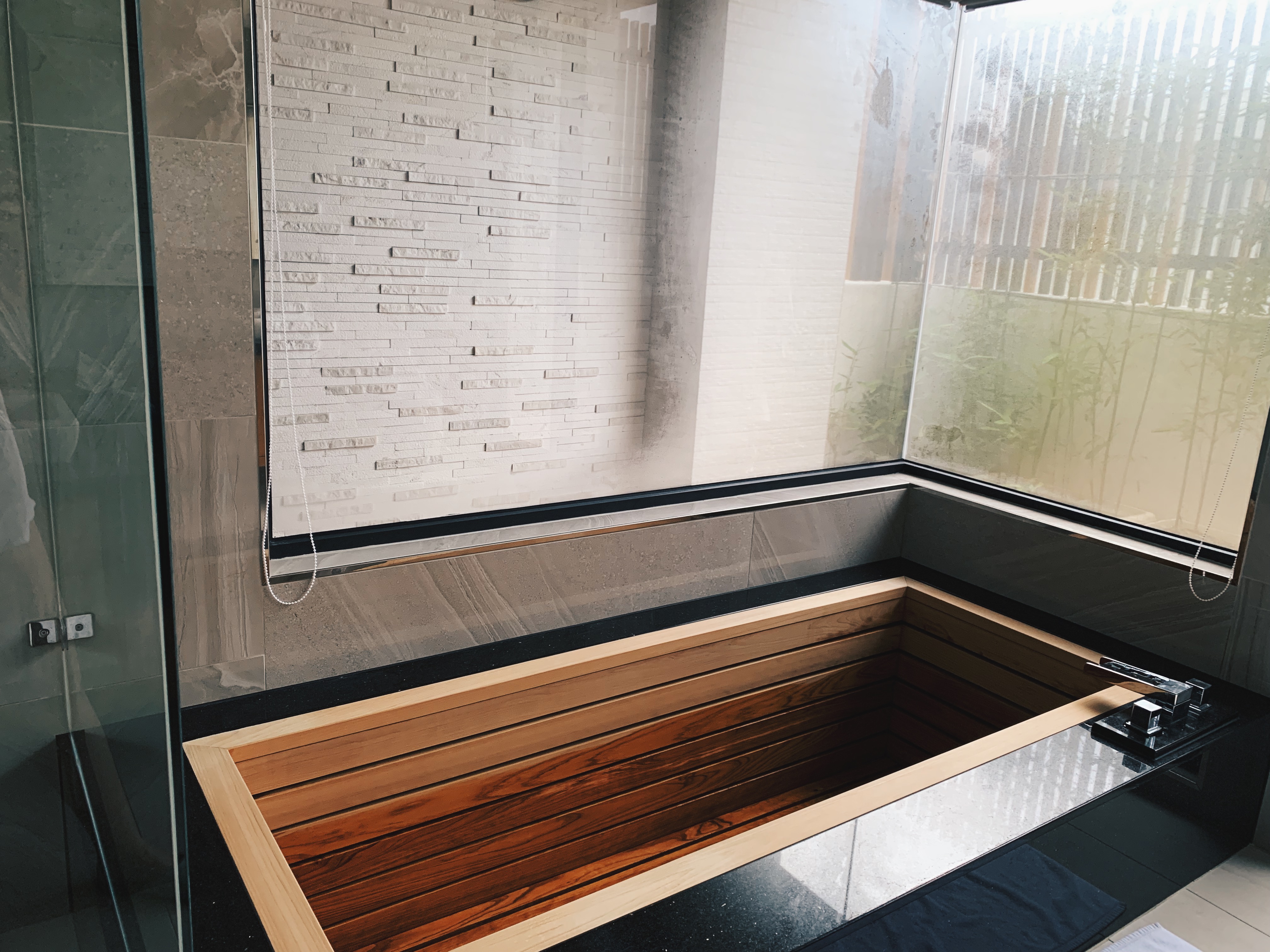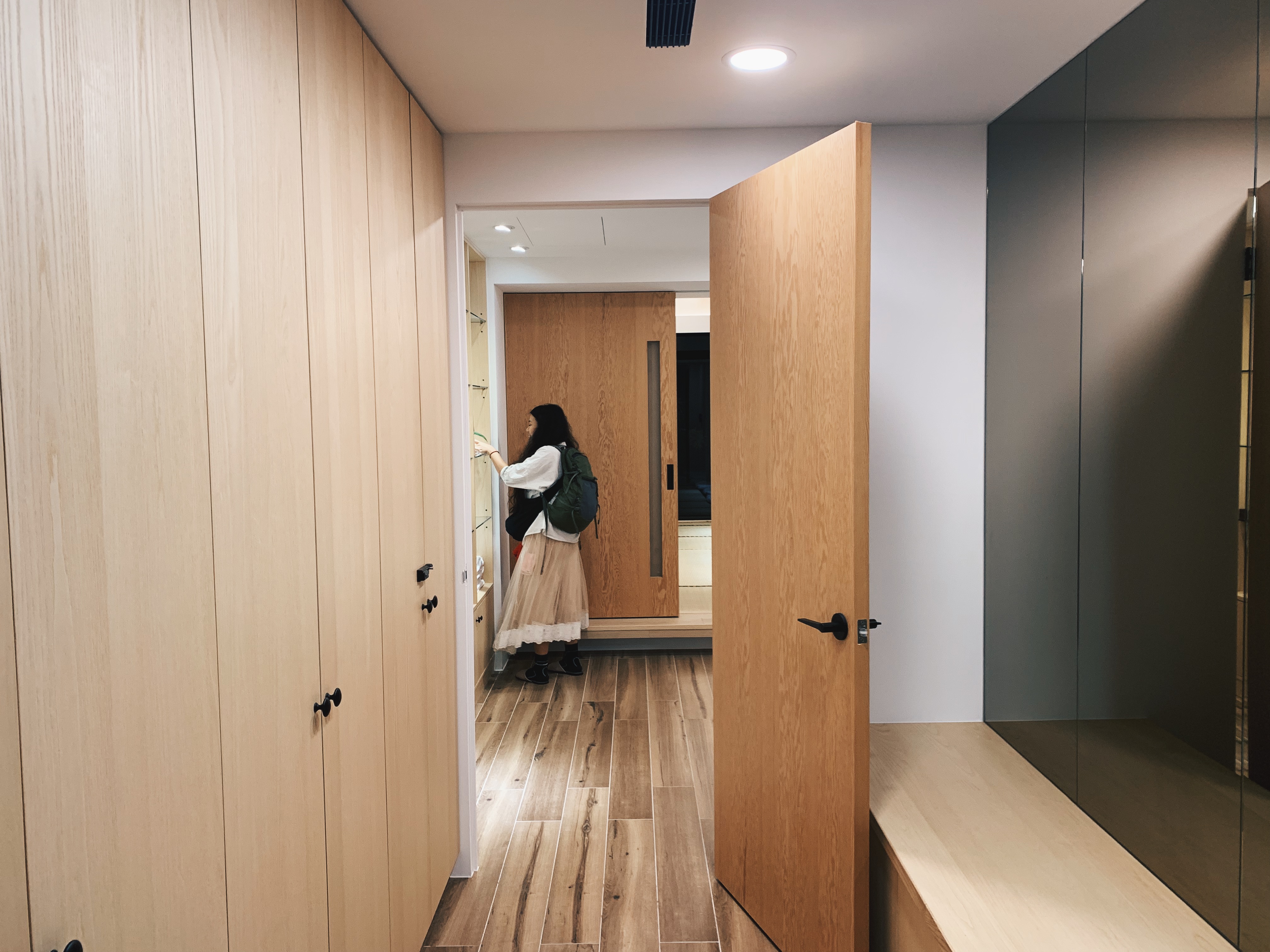 今天要入住的房間是榻榻米檜木房,進入房間後一陣榻榻米香氣撲鼻而來,讓人想在上面盡情地打滾。房間左側是換衣間延伸到廁所,裡面簡直是讓人驚嘆啊!乾濕分離且有一個檜木浴缸,心裡打定主意今晚要好好的泡個澡,另外也有兩個洗手台與超大的鏡子,這裡的鏡子都是很貼心的智能補光鏡。房間中間有個小玄關,而往右就是寬廣的榻榻米房間,簡約的日式風格,已將幫我們鋪好床墊與被子。晚上就這樣泡個澡後躺在充滿香氣的榻榻米,那草香彷彿我像是置身於大自然中。
