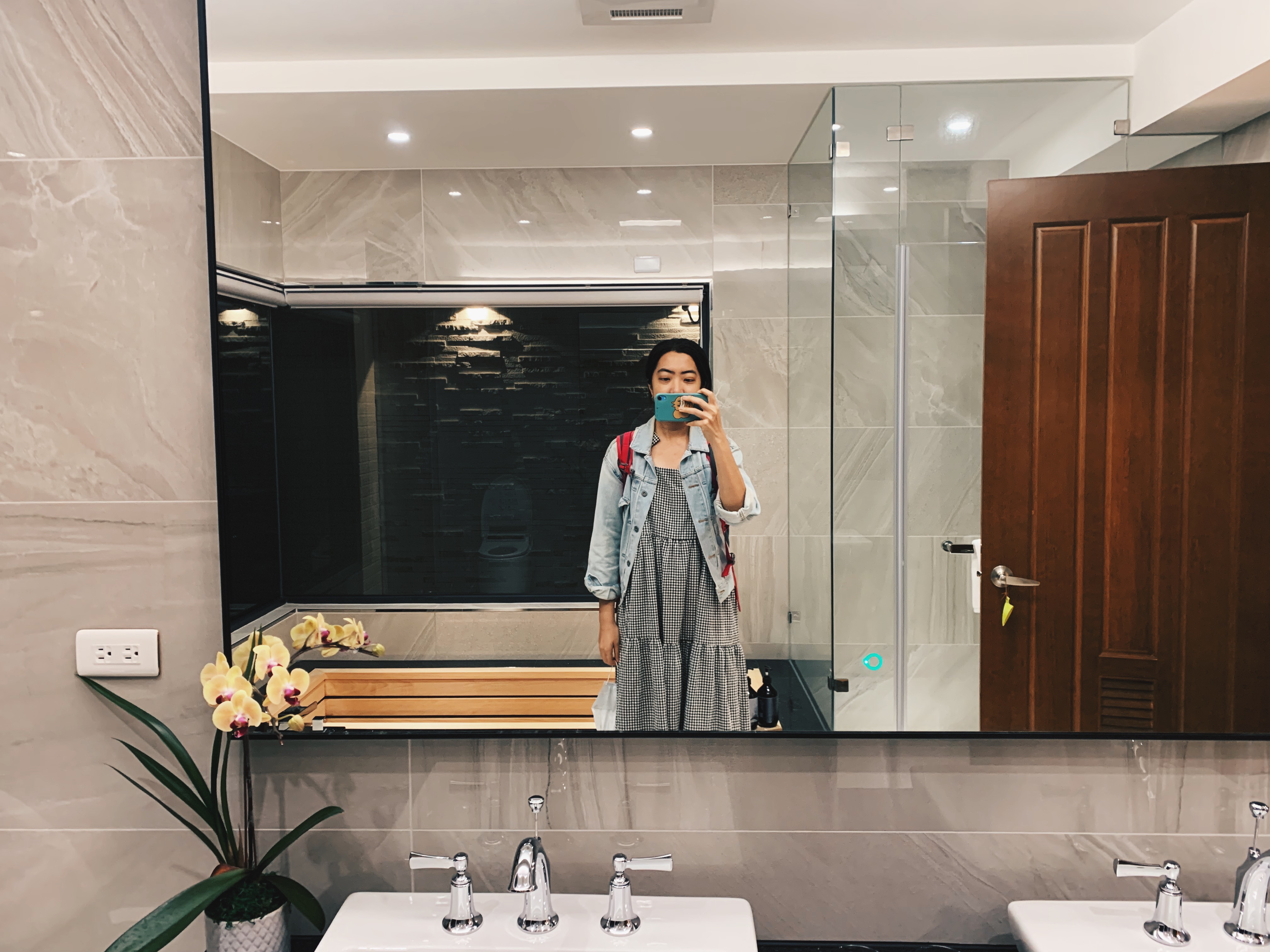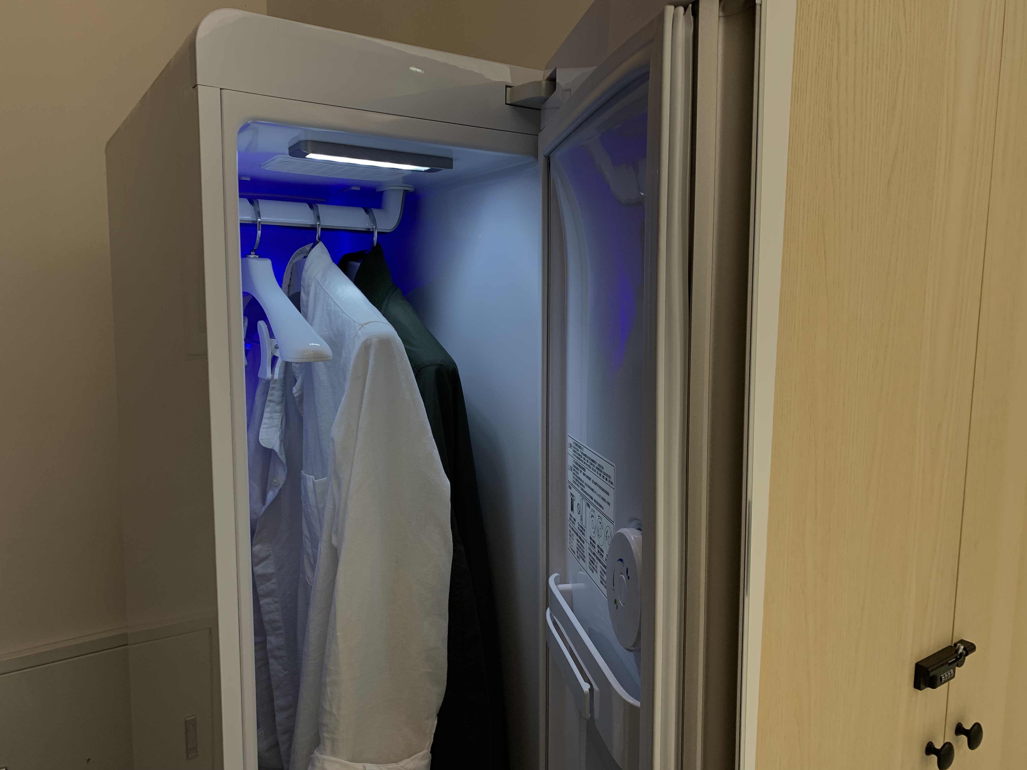 民宿的管家立即下來接待我們,帶領我們入住並且為我們介紹民宿內的設施。這整棟共六層樓,房間座落於三樓到五樓,而二樓是活動的空間包含客廳和廚房。民宿設有電梯,很適合全家老小一起來包棟,就不用扛著行李走樓梯,免除許多行動上的困難。到了二樓的公共空間,我簡直是徹底驚艷!不僅是內部空間的設計簡約大器與明亮,還有那些滿足住客所需的設施。寬廣的客廳有大座的沙發,打開電視還有內建Netflix,旁邊是個外推日式氛圍的大陽台。上去五樓還有個陽台的小吧台,旁邊還有洗衣和烘乾機可以使用。